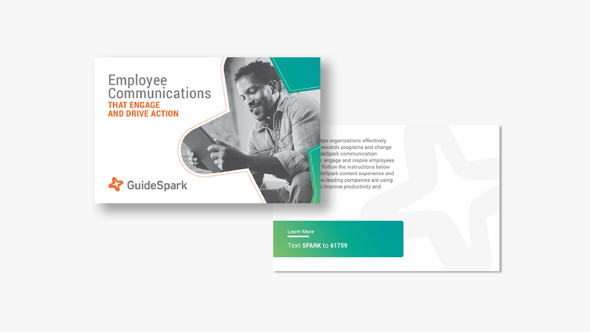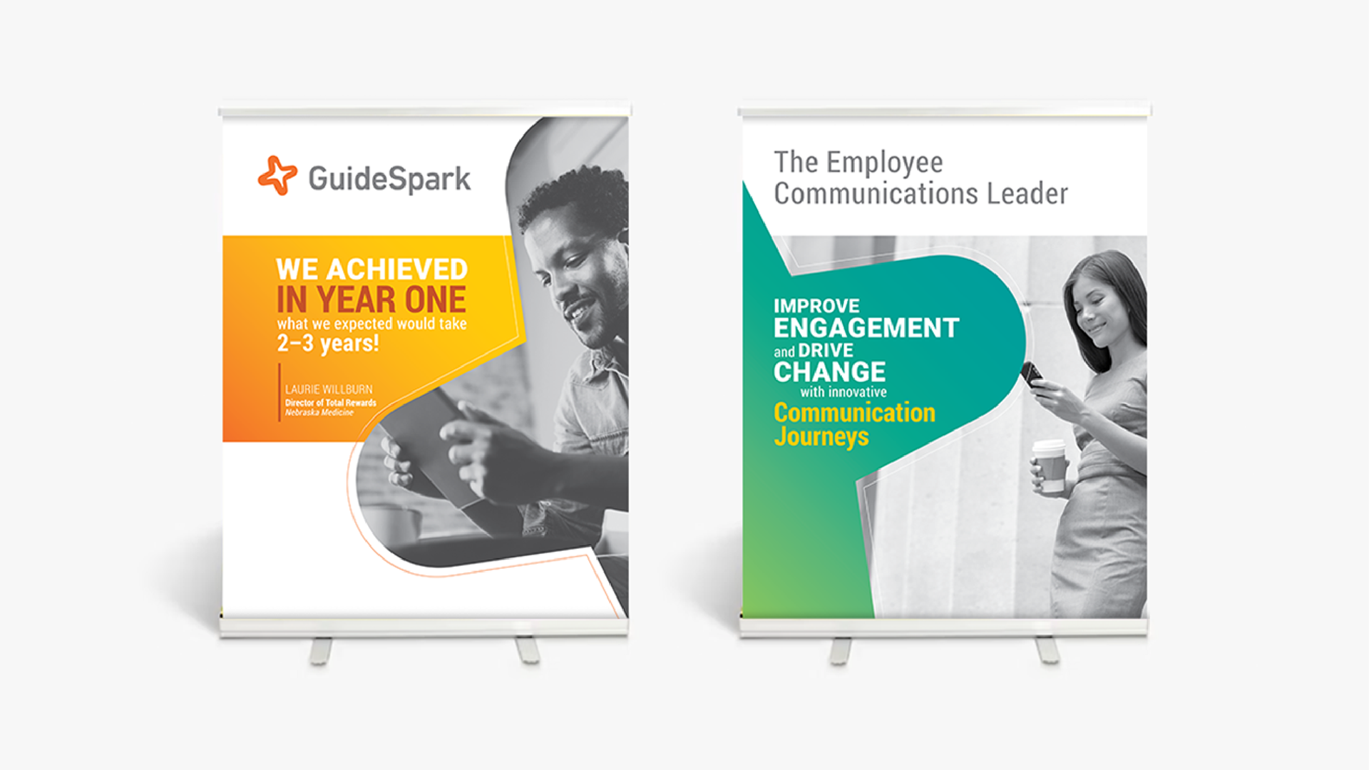 Design: Created booth signage and postcard for GuideSpark's Marketing event, World At Work. I designed within strict printing parameters for large scale banners and booth signage while producing a look that was on-brand to create customer engagement.